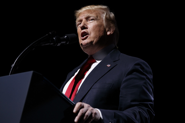 도널드 트럼프 미국 대통령이 4월28일(현지시각) 전미총기협회 총회에서 연설하고 있다. 트럼프 대통령은 같은 날 미국 언론과의 인터뷰에서 “한국이 사드 비용을 지불하는 것이 적절하다”고 말해 논란을 불렀다. AP 연합뉴스