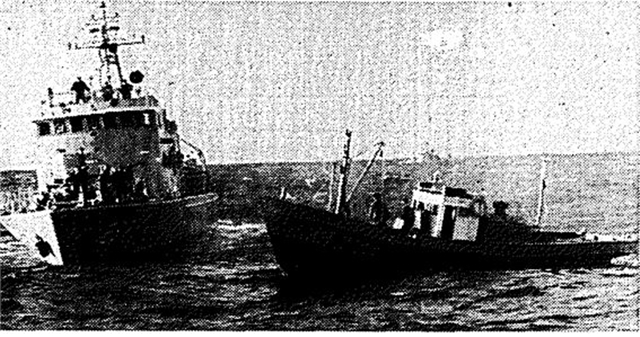 조심스레 접근했다. 배에 탄 이들은 가자미 조업차 원산항을 출항했다가 악천후와 연료 부족으로 8일간 표류 중이라고 했다. 군함과 어선 간에 현측 높이의 차이가 너무 커서 배를 붙일 수 없었다. 가까이만 가도 높은 파도 때문에 부딪쳐 자칫 어선이 침몰할 수도 있었다. 높은 파도를 뚫고 작은 함정이 나오기를 마냥 기다려야 할 상황이었다.
