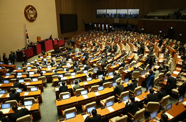 2016년 12월29일 국회 본회의장에 의원들이 새롭게 바뀐 좌석 배치에 따라 앉아 있다. 정당지지율에 따라 의석수를 배정받는 제도로 바꾸려면 의석수를 현재 300석에서 360석으로 늘려야 한다는 주장이 나온다. 한겨레 강창광 기자