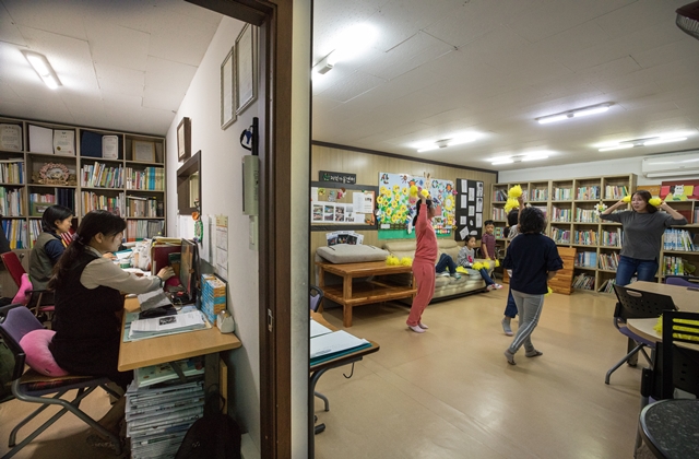 센터를 방문한 10월11일 가을비가 내렸다. 이사를 앞둔 장명임 센터장은 눈시울을 붉히며 질문에 답했다. 이날 정희는 늘 입고 다니던 짧은 바지와 빨간색 반팔 티셔츠를 입고 센터를 찾았다. 장명숙 선생님은 쌀쌀한 날씨에 혹여 감기 걸리지 않을까 걱정돼 정희에게 “내일은 꼭 외투를 입으라”고 말했다. 그날 명우는 알림장 쓰는 법을 배웠고, 지현이는 평소 싫어하던 멸치를 꼭꼭 씹어 먹어야 했다. 이날 센터의 밤은 마지막 귀가 학생인 희준의 엄마가 올 때까지 계속됐다.
