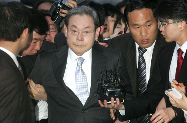 이건희 삼성 회장이 2008년 삼성 특별검사 사무실에 출석하고 있다. 이 회장은 특검 수사 뒤 4조5천억원 규모의 차명주식을 실명전환하겠다고 했으나, 실명전환하지 않고 돈만 찾아간 것으로 드러났다. 한겨레 강재훈 선임기자