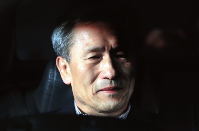이명박 정부의 군 댓글 공작에 관여한 혐의로 구속됐다가 구속적부심에서 풀려난 김관진 전 국방부 장관이 11월22일 밤 승용차로 경기도 의왕시 서울구치소를 빠져나가고 있다. 연합뉴스