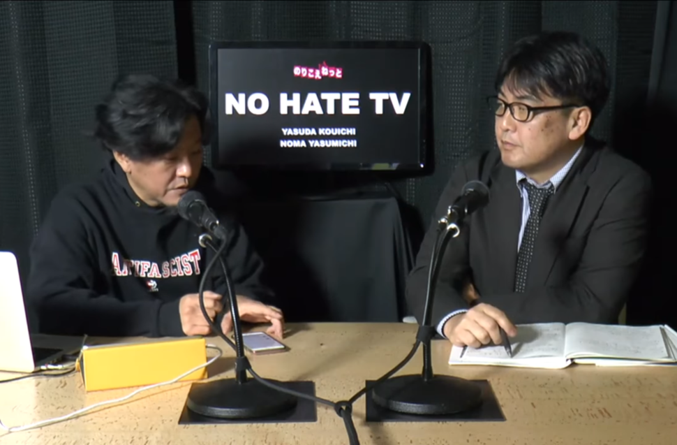<노 헤이트 TV> 방송장면. 오른쪽이 야스다. 유튜브 갈무리