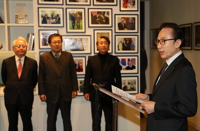 이명박 전 대통령이 1월17일 서울 삼성동 자신의 사무실에서 최근 검찰 수사와 관련해 기자회견을 하고있다, 사진공동취재단