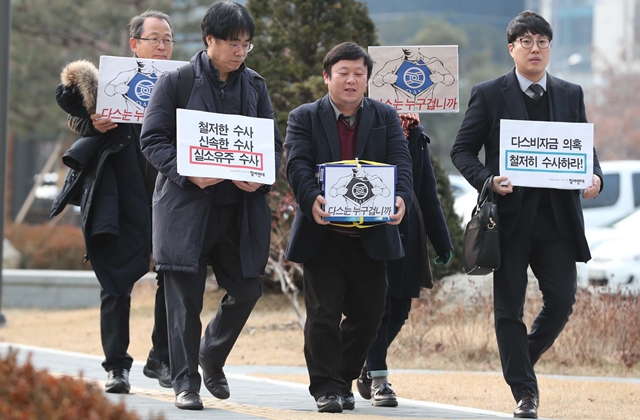 안진걸 참여연대 사무처장(가운데)이 지난해 12월 28일 서울 송파구 동부지방검찰청에 다스 비자금 의혹 관련 고발인 자격으로 출석하고 있다. 한겨레 백소아 기자