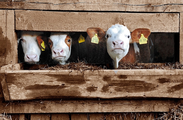 송아지들이 고기용으로 사육되고 있다. 송아지의 거처는 1980~90년대 한 마리씩 들어가는 나무 울타리에서 최근에는 공간도 넓어지고 마당도 있는 등 동물복지적으로 일부 개선됐다(위). 동물을 인도적으로 대하는 사람들(PETA) 제공
