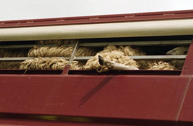 화물트럭 짐칸에 양이 실려 있다. 페이스북 ‘브라이틀링시의 전투’
