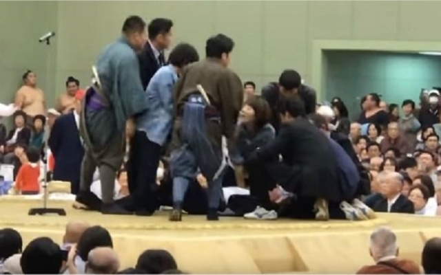4월4일 일본 교토부 마이즈루시에서 열린 스모협회 행사 장면입니다. 쓰러진 남성은 축사를 하던 마이즈루 시장이고, 도효로 올라간 여성 2명은 구경 온 의사들입니다. 왜 응급처치에 나선 의사들이 죄라도 지은 양 쫓겨나듯 도효에서 내려갔을까요? 일본 스모계는 완전한 금녀의 영역입니다. 스모가 시작된 뒤 여성이 도효에 올라가는 것을 엄격히 금했습니다. 결국 사람 목숨이 경각에 달린 급박한 상황에도 생명보다 스모계의 관행을 더 중요시한 겁니다.