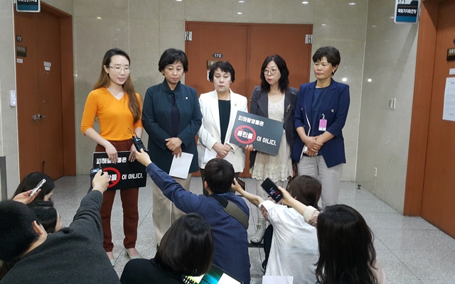 지난 5월23일 오전 서울 여의도 국회의사당에서 한국사이버성폭력대응센터와 김포여성상담센터가 ‘성폭력처벌법 제14조 개정’을 촉구하는 기자회견에서 질의응답하고 있다.