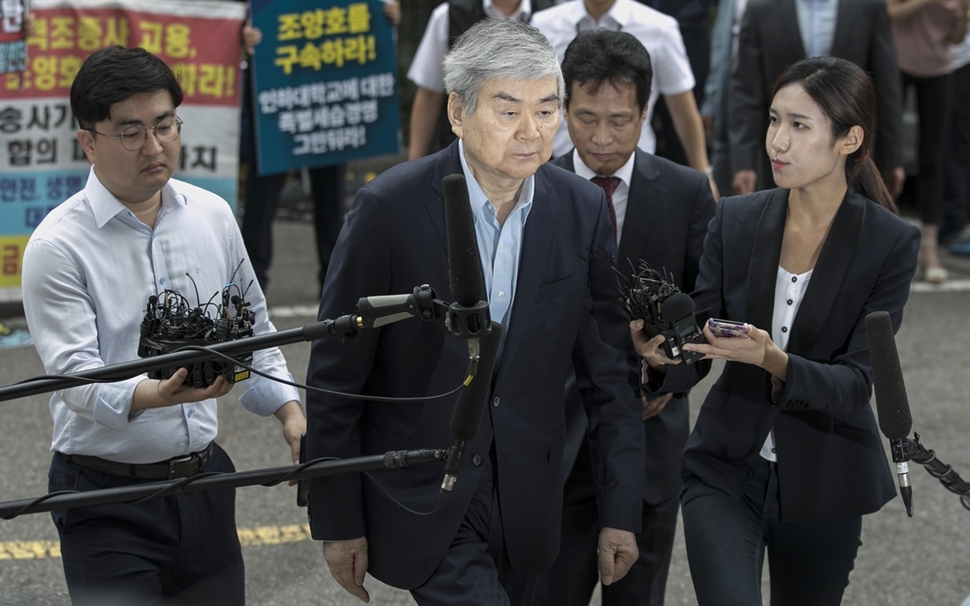 조양호 한진그룹 회장이 7월5일 서울 양천구 남부지법에서 영장실질심사를 받기 위해 법정으로 향하고 있다. 한겨레 김성광 기자