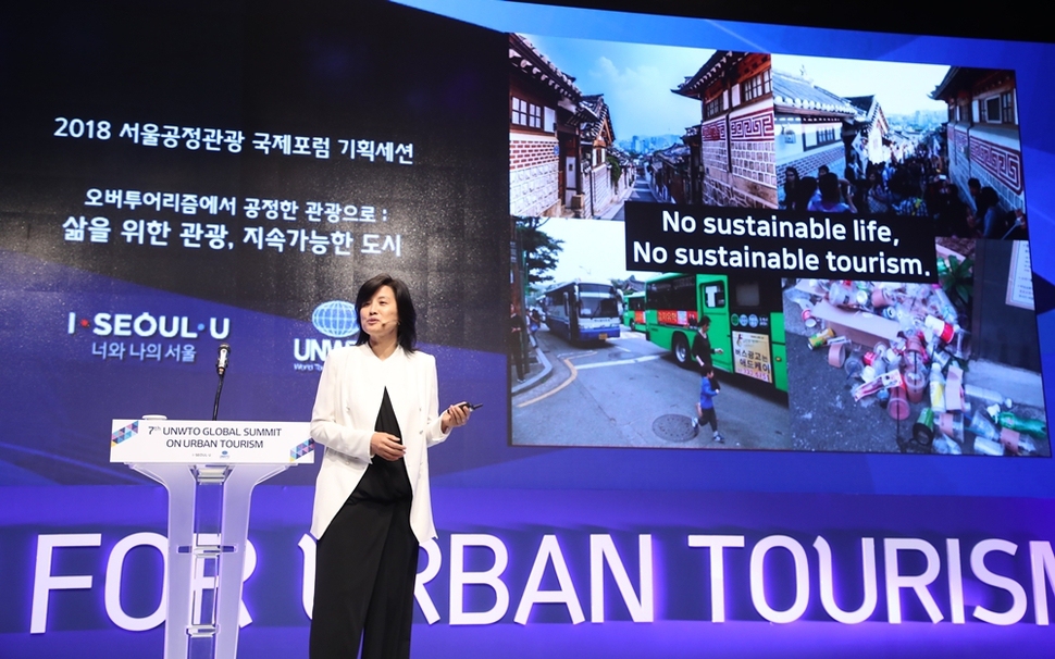 유엔관광기구의 샌드라 카르바오 관광경쟁력 최고책임자는 마무리 발언에서 “관광의 성공에 스스로 도취해 있는 동안, 오버투어리즘이란 예기치 못한 반작용이 일어났다. 이제 오버투어리즘을 넘어 각 도시가 어떤 진정성 있는 관광 가치를 만들어낼 것인지 고민해야 한다”고 강조했다. ‘관광시민’이란 개념을 환기했다. “카페에서 커피를 마시는데 누가 관광객이고 누가 주민인지 구분할 수 없는 상태, 그게 가장 바람직한 관광지의 모습일 것이다. 관광시민이 주민의 소리에 귀 기울이고 지역의 문화유산을 존중하는 자세를 가질 때, 관광지에서의 혜택도 가장 크게 누릴 수 있을 것이다.”
