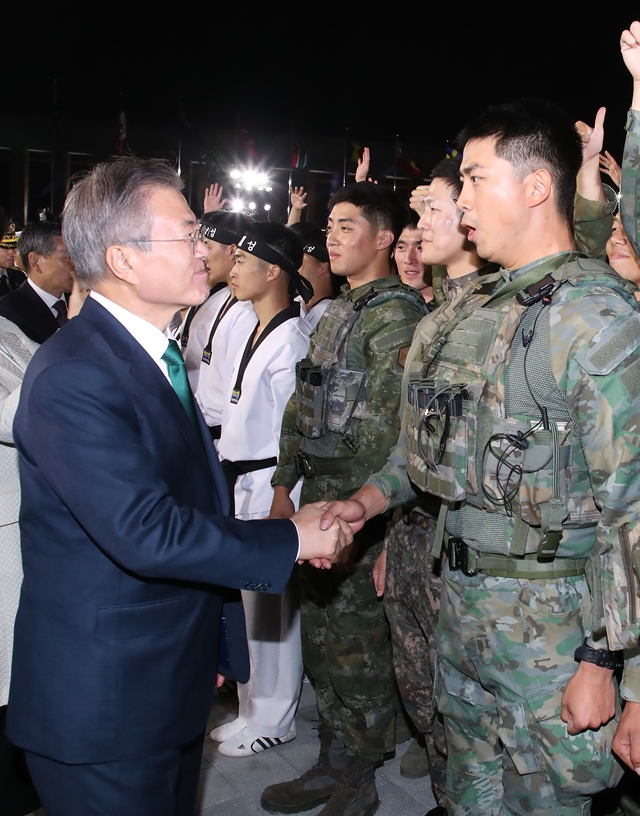 문 대통령은 참모들과의 티타임에서 “국군의 날 행사가 바뀐 것은 평화 기조로 설명할 수도 있지만, 장병들의 관점에서도 해석되어야 한다. 국군의 날은 장병이 주인이 되는 날이어야 한다”고 강조했다. “과거 국군의 날 행사를 하자면 장병들은 4월 봄부터 준비해야 하고, 특히 여름철이면 더 힘이 든다. 기수단과 병사들이 발을 맞춰 열병하는 것이 보통 어려운 것이 아니다. 그 고충을 생각해야 한다”고 했다고.
