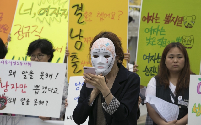 ‘제2회 임금차별타파의 날’인 5월18일 서울 종로구 광화문광장에서 한국여성노동자회와 전국여성노동조합의 집회 모습. 한겨레 김성광 기자