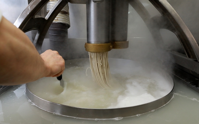 한 평양냉면 집의 제면기에서 면이 나오고 있다. 류우종 기자