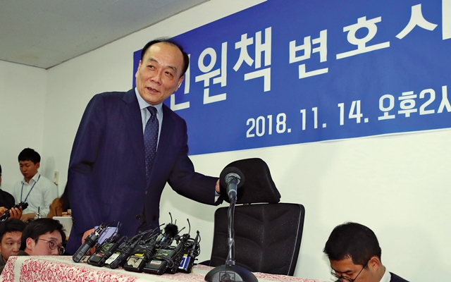 ‘문자 해촉’ 된 전원책 변호사가 11월14일 기자회견에 나섰다. 그는 “적어도 (한국당 의원) 절반은 물갈이해야 한다. 지금까지 보스 흉내를 냈던 분들은 자중하라”며 작심발언을 쏟아냈다.