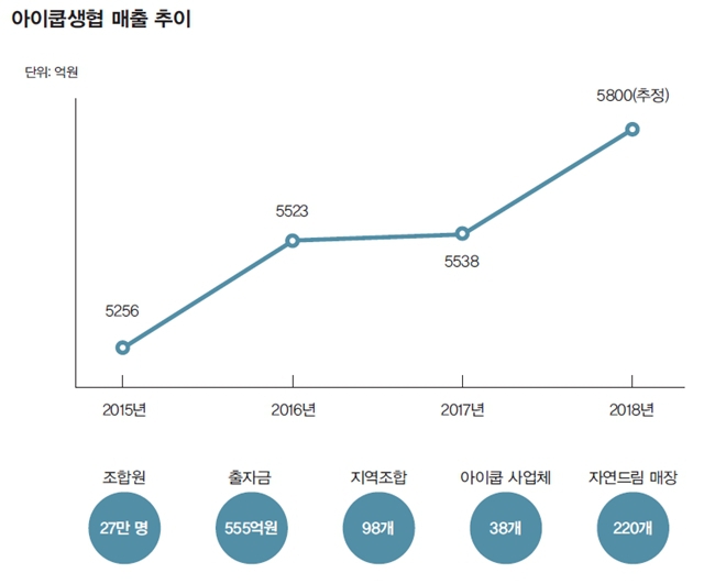 괴산의 자연드림파크는 100만㎡(30만 2500평) 넘는 터에 1천억원 이상을 투자한 대규모 친환경 유기농식품 산업단지다. 전국 220개 자연드림 매장의 물품을 생산하는 공방과 물류센터가 모여 있고, 영화관·카페·수제맥줏집과 소규모 호텔이 들어서 있다. 괴산에 앞서 2014년에는 전남 구례에 첫 자연드림파크를 세웠다. 아이쿱 생협은 올해 예상매출 5800억원의 탄탄한 중견기업으로 성장했다. 한국에서 보기 드문 대규모 협동조합의 성공 사례다.