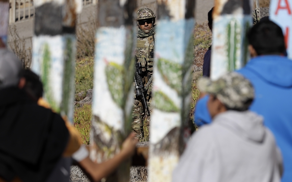 온두라스, 과테말라, 엘살바도르 등 중미 국가 이주자들이 대열을 이룬 ‘카라반’ 선두가 멕시코 티후아나와 미국 샌디에이고 사이의 국경에 도착한 11월14일, 무장한 미국 국경수비대가 장벽을 지키고 있다. 중미 이주자들은 버스와 트럭을 얻어타고 수백㎞를 달려 국경에 도착했다. 이들 중 일부는 국경 장벽을 따라 걸으며 “우리는 해냈다!”고 외치기도 했다. 국경 맞은편 제임스 매티스 미국 국방장관은 텍사스 남부 국경에 대기하고 있는 미군 부대를 방문해, 미군의 국경 파병이 전쟁에 대비한 좋은 훈련이 될 것이라고 말했다. 현재 7천~1만 명의 카라반 3개 행렬이 멕시코를 통과해 미국 국경을 향하고 있다.