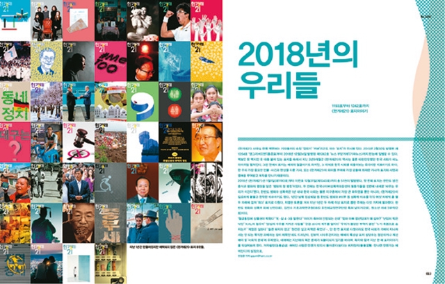 제1243호는 2018년 만든 50권의 표지 기사들을 살뜰하게 모아 ‘표지의 표지’로 구성했습니다. <한겨레21> 기자들은 늘 최선을 다해 기사를 쓰지만, 최선의 노력이 꼭 최선의 결과로 이어지는 건 아닙니다. 표지 왕관을 쓴 것도 모자라 총정리 표지에도 다시 등장한 ‘주목받은 기사’들도 있는 반면, 거의 읽히지 않거나 아예 쓰이지 않은 ‘주목받지 못한 기사’도 있습니다. 욕심 많은 기자들에게 2018년 아픈 손가락 같은 ‘묻힌 기사’와 ‘죽은 기사’(기사가 채택되지 않는 걸 ‘킬’이라고 합니다)를 물었습니다. 죽은 자식 다시 살리는 심정으로!