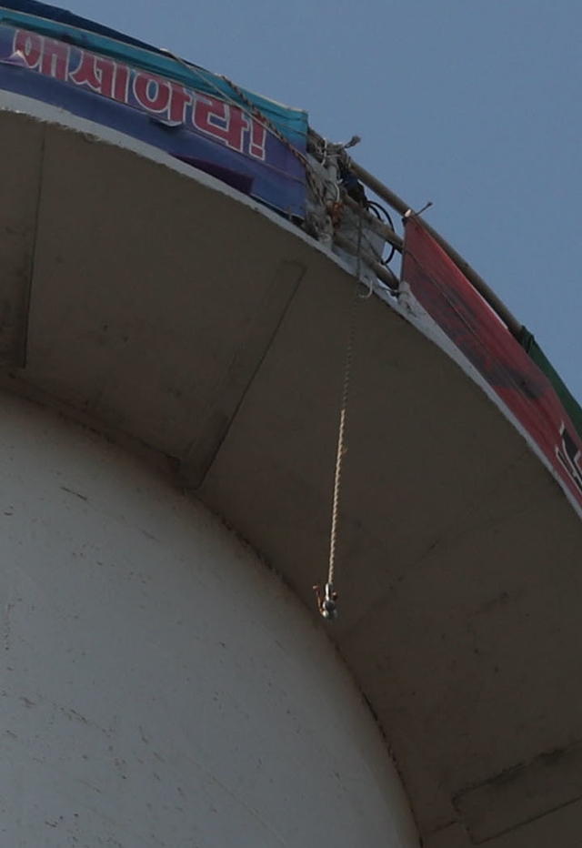 “에이, 그렇게 말렸는데….” 옥배씨는 가슴을 쳤다. 곧장 75m 위로 전화했다. “뭐 하는 거냐”고 따지듯 물었다. 박준호씨가 “괜찮다”고 했다. 뭐가 괜찮은지 도통 알 수 없었다. 옥배씨는 “진짜 할 거냐”고 되물었다. “이미 성명서를 냈다”는 짧은 답이 돌아왔다. “400일 넘는 굴뚝 농성으로 체중이 빠져 50㎏도 안 된다는데, 그 몸으로 단식하면 어쩌자는 건지.” 주인 잃은 음식을 든 옥배씨의 손이 떨렸다.