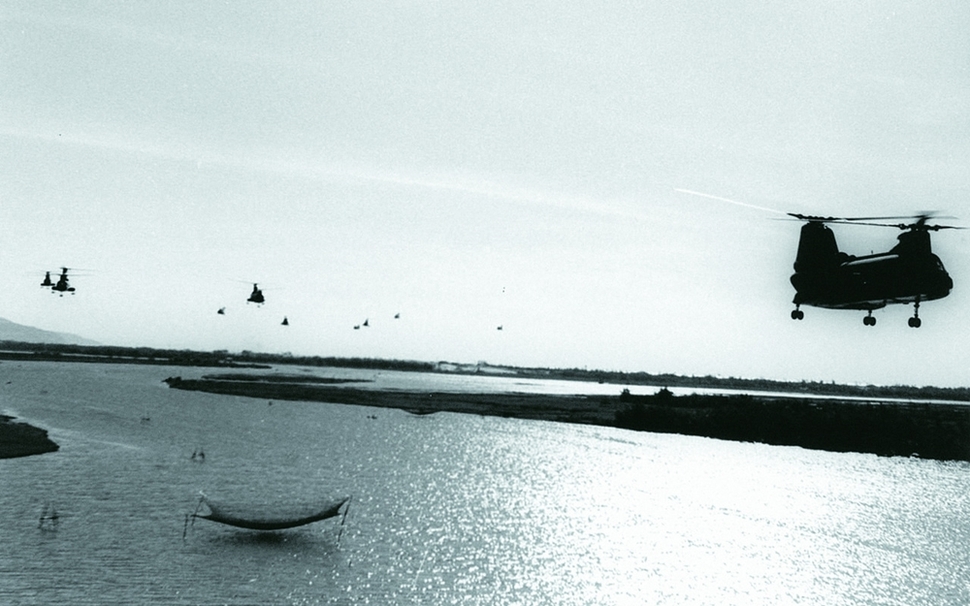 1969년 6월 이후 승룡12-1호 작전 중 투본강을 건너는 한국군 청룡부대원들. <대한민국 해병대-세계에서 가장 강인한 군대의 족보>