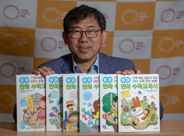 전국수학교사모임이 수년간 공들인 초등 ‘대안 수학교과서’ <만화 수학교과서> 전 6권 작업을 마무리했다. 2016년부터 준비해 2018년 1~4학년 교재를 냈고, 지난 4월15일 5~6학년용 교재까지 끝났다. 대장정을 총괄한 최수일 수학사교육포럼 대표(서울시교육청 수학교육혁신TF 공동위원장)를 4월24일 서울 용산구 사교육걱정 카페에서 인터뷰했다.