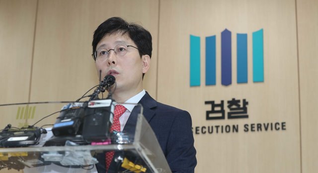 지난 6월4일 여환섭 법무부 검찰과거사위원회 수사권고 관련 수사단 단장이 김학의 전 법무부 차관 사건 중간수사 결과를 발표하고 있다. 한겨레 박종식 기자