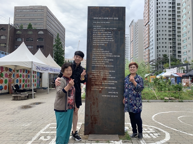 지하철 5호선과 6호선, 공항철도, 경의선 4개 노선이 오가는 공덕역 1번 출구로 나오면, 걸어서 1~2분 거리에 있는 경의선 숲길. 양옆 높은 건물들 사이 자리잡은 광장(5740㎡)엔 서울시 ‘26번째 자치구’인 경의선 공유지가 있다. 법적으로 인정받지 못하는 26번째 자치구엔 법적으로 인정받는 서울시 25개 자치구에서 삶의 터전을 잃은 사람들이 모여 있다. 서울시 26번째 자치구민 70여 명과 시민들이 낸 후원금으로 경의선 공유지의 수도요금과 전기요금 등을 충당한다.