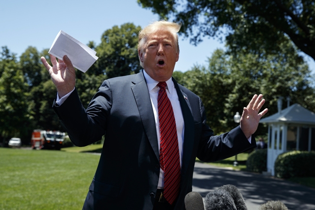기자들 앞에 선 트럼프 대통령. AP 연합뉴스