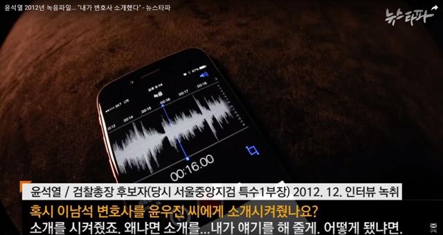<뉴스타파>는 7월8일 윤석열 검찰총장 후보자의 2012년 12월 인터뷰 녹음 내용을 공개했다. 윤 후보자는 당시 “윤우진 전 용산세무서장에게 변호사를 소개했다”고 말했다. <뉴스타파> 화면 갈무리