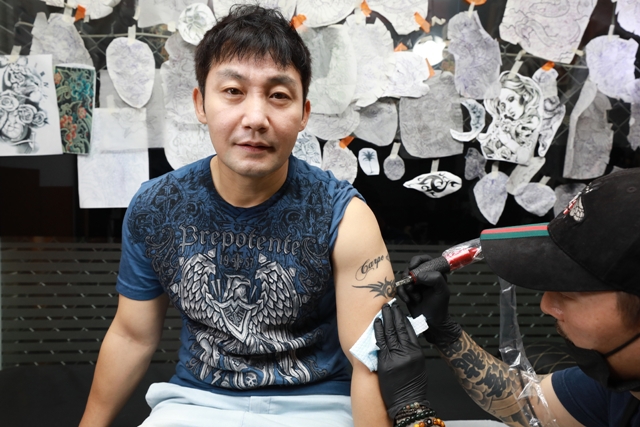 8월13일 오후 2시께 서울 강서구에 있는 2층짜리 낡은 건물 안으로 들어갔다. 예전에 전당포였다던 가게의 쇠창살 문 옆에는 ‘미성년자 출입 금지’라고 쓰인 팻말이 붙어 있었다. 쇠창살 문을 밀고 계단에 첫발을 내딛자, 초록색 갈기를 날리며 하늘로 오르는 용 그림이 뒤덮인 벽이 보였다. 용은 동양 문신을 대표하는 상상의 동물로 알려졌다. 용머리가 향한 2층 가게는 40대 문신사 김원규씨가 운영하는 타투숍이었다. 김씨의 팔다리에는 그가 새긴 잉어, 만화 캐릭터, 용, 한자 登龍門(등용문) 등이 가득했다. 그림 그리기와 채색 등을 연습하려고 몸에 직접 새긴 것이었다.