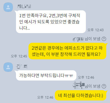 의뢰자는 식당을 운영하면서 느낀 고충과 애환을 한 페이지 가득 채워넣었다. 인건비가 부족해 혼자서 하루에 열두 시간씩 일했다는 사연은 애틋하고 눈물겹다. 하지만 전부 건너뛴다. 직공은 누군가의 인생을 읽는 독자가 아니다. 시간당 기본급 1만2천원, ‘H사 기술직 대목’에만 성과급 3천원을 받는 프로 정신을 갖춘 ‘알바생’이다. 고객의 요청 사항을 충실하게 반영하고 최대한 기술적으로 ‘창작’한다. 이 업의 ‘워크에식’(직업윤리)은 글을 한 줄도 쓰지 못하는 사람이라도 ‘있어 보이는’ 자소서를 가질 수 있다는 믿음이다. 이 믿음 속에 주인공의 업적을 강조하기 위해 있지도 않았던 ‘식당 직원’이 창조되고, ‘소심하다’는 성격적 특질은 ‘자잘한 일에 신경을 많이 쓰는 완벽주의 성향’으로 재탄생한다.“저는 식당을 인수해 운영하며 경영자적 마인드를 갖추고 업무 전체를 개괄하는 안목을 길렀습니다. 이 과정에서 함께 일하는 직원들과 힘을 합쳐 완벽주의가 과하다는 단점을 극복하고 업장의 매출을 크게 올렸습니다. 먼저, 직원들에게 솔직하게 어려운 상황을 공유하고 힘을 합쳐주기를 부탁했습니다. 제가 먼저 솔선수범해 새벽부터 저녁까지 열두 시간을 근무했고, 직원들에게 경영난의 영향이 미치지 않도록 배려하며 업장을 성장시키기 위한 전략을 수립했습니다. 이를 통해 관리자로서의 역량을 기르며 시야를 크게 넓힐 수 있었습니다.”‘H사 기술직’ 광풍이 부는 동안, 이 공장에서는 나처럼 네 배 비싼 자소서가 150편 이상 생산됐다. 가장 급박했던 건 마감이 24시간도 채 남지 않았을 때 의뢰돼 만들어진 ‘최우선 마감’ 3편이다. 의뢰자는 어김없이 불안을 담아 물었다. “혹시라도 서류 전형에 합격할 가능성은 얼마나 될까요?” 회피하고 싶어도 언젠가 마주하는 질문. 그러나 걱정할 건 없다. 매뉴얼이 있다. ‘전문 컨설턴트’인 공장장의 말투로, 되도록 두루뭉술하게, 결과를 장담해 시비가 걸리지 않도록 하면서도 고객의 기분은 상하지 않게. “총 지원자 수에 따라 다르기도 하고, 다른 경력이나 이력 등이 변수가 되기도 해서 섣불리 답변드리기는 힘들 것 같습니다^^” 마지막에는 웃는 이모티콘을 꼭 붙여야 한다.