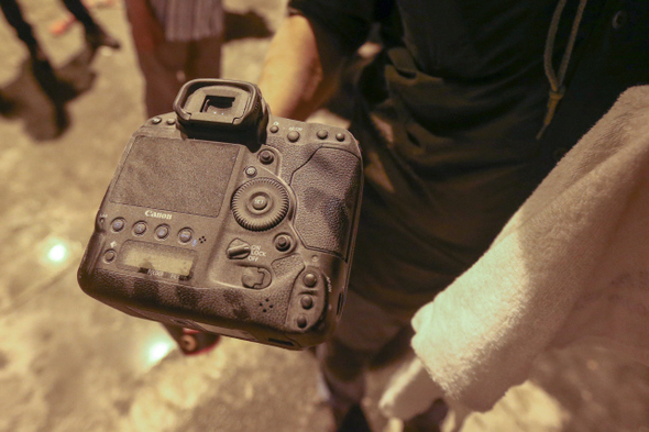 소화기 분말이 하얗게 점령한 박승화 기자의 카메라.한겨레 김태형