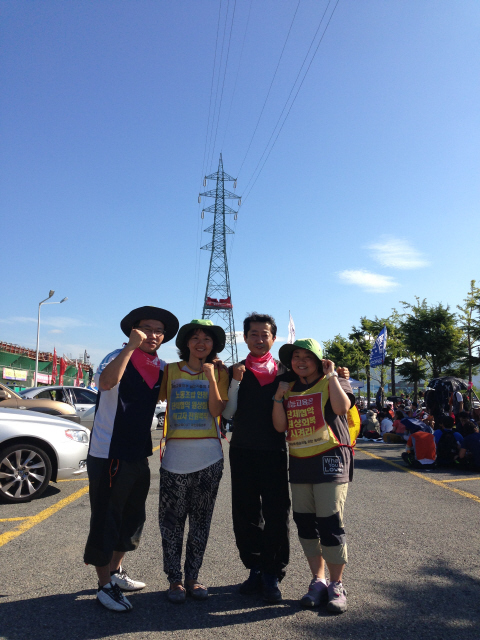 김경은씨는 “솔직히 부럽다”고 했다. “두 철탑 노동자들을 위해 100여 대의 버스가 움직이는 모습도 부럽고, 철탑 앞에 수천명의 사람이 모일 수 있는 공간이 있다는 사실도 부러워요. 재능교육 싸움이 현대자동차 싸움처럼 전국적으로 이슈화되지 않아 안타깝고요.” 정순일씨는 “우리도 종탑 위 두 사람에게 힘을 실어줄 뭔가를 해야 하는데 뜻대로 안 돼 답답하다”고 했다.