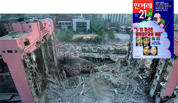 삼풍백화점 붕괴 사고는 설계·시공·유지관리의 부실에 따른 예고된 참사였다. 1년 전에 발생한 성수대교 붕괴 사건과 함께 압축성장의 그림자였다. 왼쪽은 5공 청산을 표지이야기로 다룬 1995년 12월21일치 제89호.