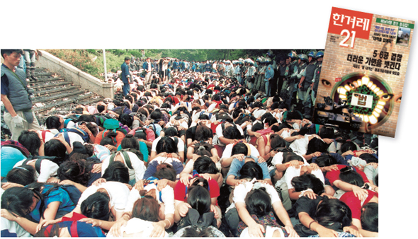1980년 이후 최대 진압 작전으로 기록된 ‘한총련 사태’로 대학생 5848명이 연행되고 462명이 구속됐다. 왼쪽은 5·6공에 부역했던 검찰을 고발한 1996년 1월25일치 제93호.