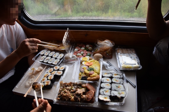 블라디보스토크를 출발한 뒤 북한 노동자들이 평양에서 싸온 도시락을 풀어 함께 먹었다.
