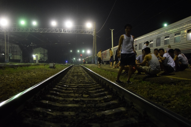 우수리스크역을 떠난 열차는 4시간 만인 새벽 1시에 다시 15분간의 정차 시간을 가졌다. 모두들 잠을 자고 있는 줄 알았는데 주섬주섬 일어나 승강장으로 내려섰다. 어둠 속에서 홀로 불을 밝힌 역사가 서 있었다. 열차의 창에서 새나오는 빛이 승강장 바닥에 무늬를 만들어 보였다. 사람들은 며칠 뒤 만나게 될 미지의 세계에 대한 막막함을 담배 연기에 실어 어둠 속으로 날렸다. 갑자기 호각 소리가 들렸다. 역무원이 승강장 가까이에 쪼그려 앉은 사람들을 일으켜세웠다. 잠시 뒤 굉음을 내며 화물열차 한 대가 지나갔다. 아주 긴 열차였다. 마지막 꼬리가 지나가면서 바람과 소리까지 휘몰아 가져갔다. 잠시 휑한 느낌을 갖는 순간 이제는 조금 적응이 된 평안도 말투가 튀어나왔다. “로씨아 놈들 대단하네. 화차가 예순일곱 칸이야.” 옆에 있던 다른 동포가 말을 받았다. “야! 넌 그걸 세고 앉았었네?” 하하하, 꼭 있다. 열차 지나갈 때 몇 량인지 세는 사람.