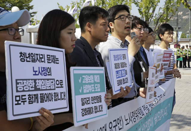셋째, 사회적 대화 또는 사회협약이다. 기존 노사정위의 논의 틀에도 청년 일자리 문제가 의제로 올라있긴 하다. 노사정위가 내놓은 ‘노·사·정 협약을 통한 청년고용 활성화’ 초안에는 △청년고용 확대 기업에 세제 지원 △청년창업 활성화 △노사정위 내에 청년고용회의체 구성 등의 내용이 담겨 있다. 그러나 여기엔 청년 당사자의 목소리가 빠져 있다. 청년유니온 등 12개 청년단체들이 “청년 일자리 문제를 제대로 풀기 위해서는 청년, 비정규직 등 당사자들의 목소리를 충분히 경청하고 노·사·정 3주체의 초당파적 협력이 절실하다. 이 나라를 ‘헬조선’이라 부르는 미래 세대의 위태로운 삶은 노사정위원회에 책임 있는 변화를 요구하고 있다”며 노사정위에 대화를 촉구한 까닭이다.