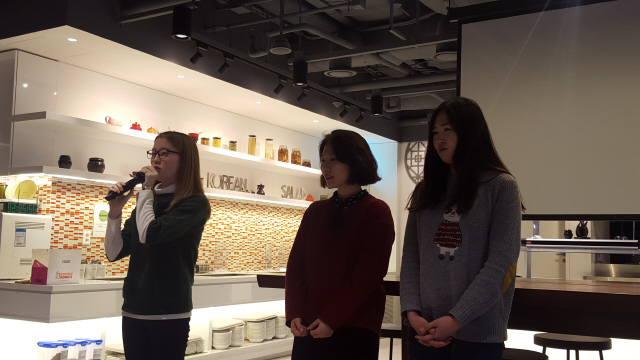 넥스트저널리즘스쿨 마지막 날인 1월30일 우수 수강생으로 뽑힌 연다혜, 김혜인, 이민경(왼쪽부터)씨가 소감을 말하고 있다. 이완 기자