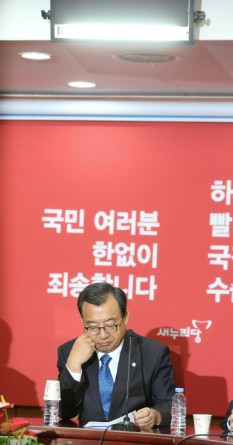 이정현 새누리당 대표가 11월21일 서울 여의도 당사에서 열린 최고위원회에서 자료를 보고 있다. 이 대표는 위기의 박 대통령이 기댈 가장 믿음직한 언덕 중 하나다. 한겨레 강창광 기자