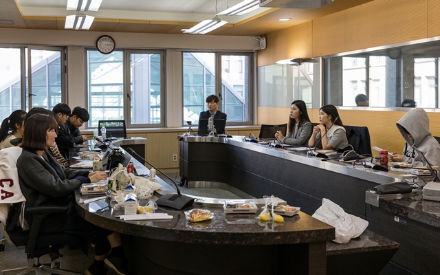 10월20일 서울 동대문구 카이스트 테크노경영대학원에서 청소년 멘털 헬스 리더십 ‘스타 프로그램’에 참가한 학생들이 교육부 상담 앱 ‘다 들어줄 개’ 연구원들에게 자문해주고 있다. 박승화 기자