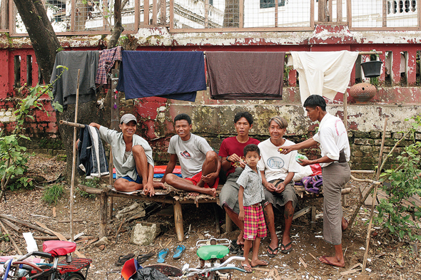랑군 시민들은 전기가 끊어져 호롱불 신세를 지고 있는데, 복구가 이뤄지는 곳은 사원뿐이다. 사이클론 피해를 입은 랑군의 한 가족.
