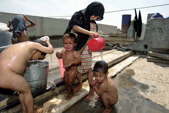 어른들의 어두운 표정과 달리 아이들은 웃음을 잃지 않고 있었다. 갑작스런 이방인의 출현에 놀랄 법도 한데 오히려 신기한 구경거리를 만난 듯 웃고 떠들며 우리 뒤를 졸졸 따라다녔다. 곧 무너질 듯 위태롭게 서 있는 계단을 지나 2층에 오르니 고추까지 내놓은 벌거숭이 어린이들이 목욕을 하고 있었다. 찬물을 뒤집어쓰고 울음을 터뜨린 막내의 팔을 잡은 채, 쪼그려 앉은 넷째의 머리에 물을 부어주는 누나는 동생들의 모습이 재밌어 죽겠다는 표정이다. 전쟁으로 팽팽한 긴장감이 감도는 바그다드 시내 한복판에서 우연찮게 만난 이 풍경은 긴장해 굳어 있던 우리의 얼굴에도 미소와 여유를 찾아주었다.