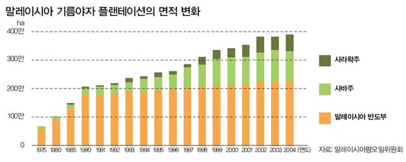 말레이시아 기름야자 플랜테이션의 면적 변화 (※ 이미지를 클릭하면 크게 볼 수 있습니다)