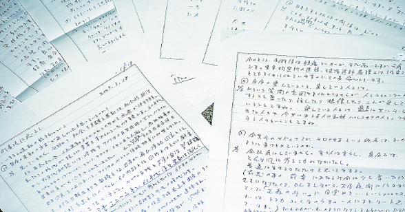 시게노부 후사코가 보내온 9장 짜리 서면 인터뷰 답변지. 그는 구치소 면회실에서 이뤄진 10분간의 인터뷰에서 다하지 못한 말을 서면 인터뷰에서 자세히 풀어놨다.