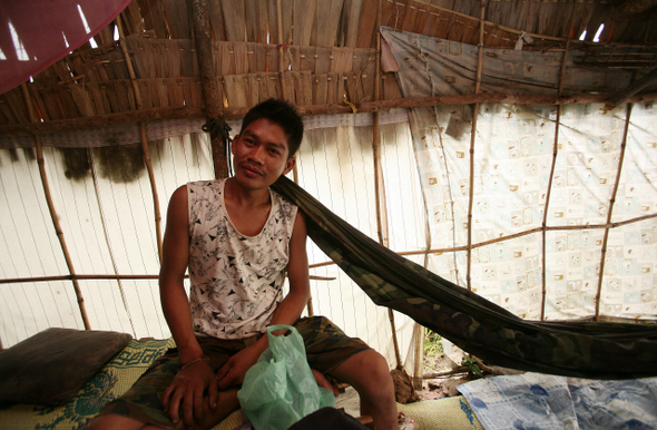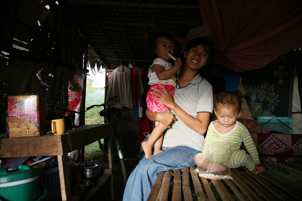 다음날 조금은 주저하는 마음을 가라앉히고 약속 시간에 맞춰 타이분롱 마을을 찾아갔다. 혹시나 하며 반신반의하는 마음으로 나를 기다렸던 바는 어제보다는 정신이 멀쩡했고, 아주 기쁜 표정으로 반겼다. 외국인이 마을을 찾아오는 경우가 드물었던 탓인지 그는 곧 내게 “쁘렌 쁘렌”(Friend)이라며 엄지손가락을 치켜들었다. 뚜렷한 직업이 없는 그는 가끔 에어컨 수리일을 다니거나 운전을 하면서 어렵게 아내 쏜타윈(20)과 아들 씨응(2), 딸 쩨랑(1) 등 4인 가족의 생계를 책임지고 있었다. 그는 수줍어했고, 무엇이든 먹을거리를 내놓으려고 했다. 어제 그를 경계했던 내 마음을 아는지 모르는지, 그는 자신의 집을 찾아온 손님에게 최선을 다해 즐겁게 해주려고 애썼다. 겉만 보고 함부로 그를 판단한 속없는 내 생각이 어찌나 미안하던지.