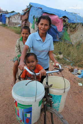 판자촌에 집집마다 수도가 있을 리 없다. 힘을 보태기엔 아직 어린 두 아들이 따라나섰으니 힘이 두 배로 들 텐데, 물 긷는 어머니의 표정은 환하기만 하다.