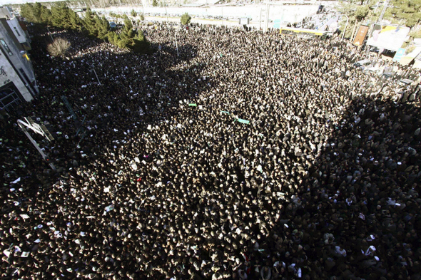 무하람 나흘째인 12월21일 성지 콤에서 몬타제리의 장례식이 열렸다. 이란 전역에서 몰려든 애도 인파가 인산인해를 이뤘다. 개혁파 대선 후보이던 미르호세인 무사비 전 총리와 메디 카루비 전 의회의장도 콤에 모습을 드러냈다. 몬타제리의 영정을 든 참배객들은 “독재자에게 죽음을”이라고 외쳤다. 하메네이의 초상을 치켜세운 이들은 “위선자에게 죽음을”이라고 맞받았다. 반정부 시위대 탄압에 앞장서는 바시즈 민병대도 오토바이를 타고 거리를 배회했다. 콤은 작은 이란이었다.