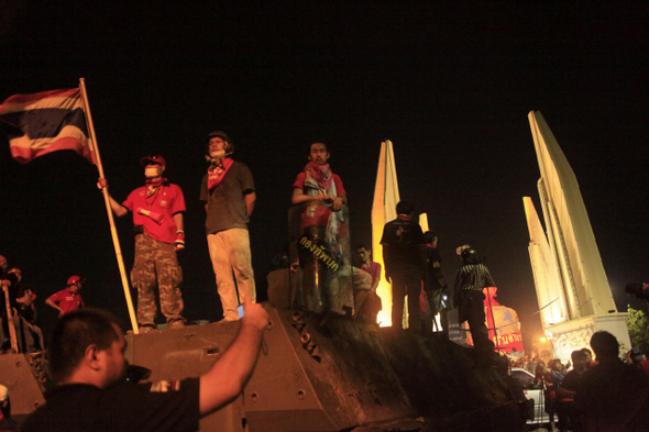 타이 역사의 ‘가장 어두운 시간들’로 표현된 2시간여의 대혼란과 총격전은 밤 9시를 넘기며 잦아들었다. 퇴각한 군인들이 어둠 속에 남겨놓은 탱크 앞에는 민주탑의 불빛을 받은 붉은 피가 반짝거렸다.