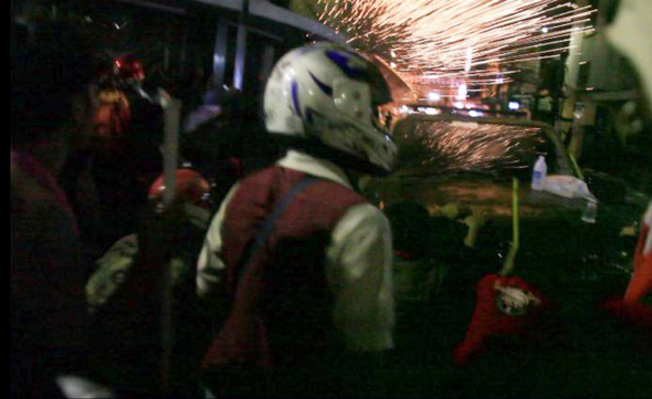 4월10일 오후로 접어들면서 상황이 심상치 않게 돌아갔다. 시위대는 여느 때와 다름없이 맨손이었지만 이들의 이동을 막는 무장군들이 곳곳에 배치됐다. 그리고 3시께, 수십 명의 시위대가 시위 중앙무대가 있는 팡파 다리로 향하던 중 정부청사 부근에서 군의 바리케이드에 막혔다. 군인들을 설득하는 데 실패한 시위대는 자신들의 수가 불어나자 몸으로 군을 밀어붙였고 군대열은 의외로 쉽게 뚫렸다. 일부 시위대는 부서진 바리케이드에서 집어올린 막대기를 손에 쥐기 시작했다. 그러나 곧 물대포와 M16으로 무장한 군인들이 반격해오자 시위대는 다시 밀렸다. 이즈음 영자 일간지 <더 네이션>은 “시위대, 날카로운 대나무 막대기로 무장…”이라는 브레이킹 뉴스를 띄웠다. 곳곳에서 크고 작은 충돌이 벌어졌다. 하늘에서는 헬리콥터가 연방 최루탄을 뿌려댔다.